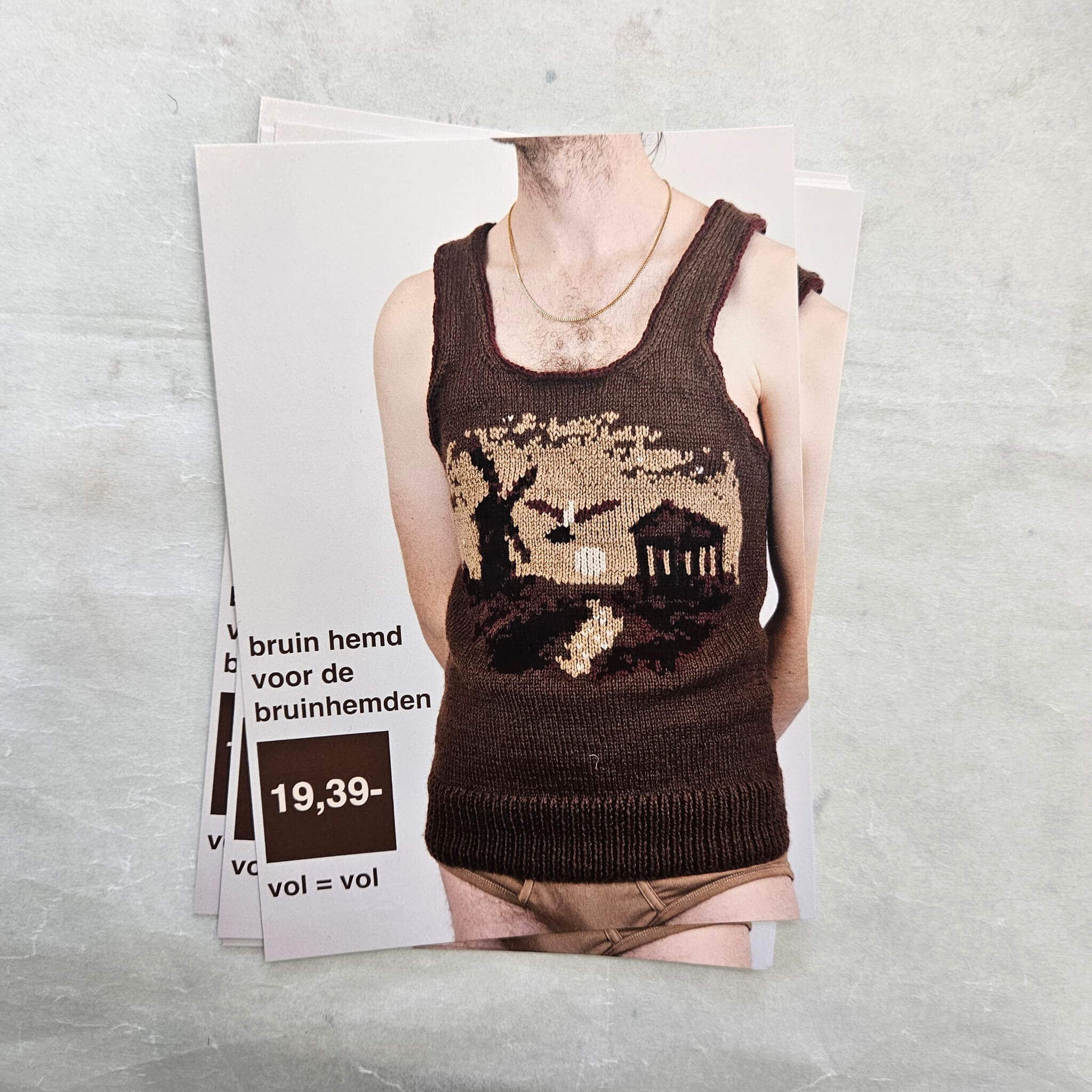 That’s why I made a brown shirt for the brownshirts. On the shirt you’ll find logos of political parties like PVV (seagull) and Forum voor Democratie (Roman temple).
