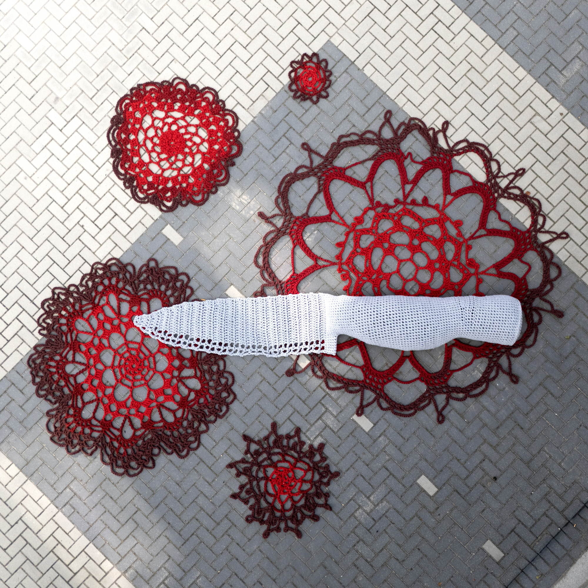 This piece is a follow-up of the Walther Plush5 gun I made for Festival De Basis in 2014 in which I took the attributes of the crochet guns to the extreme. More fleshy pink, more softness, more uselessness…
